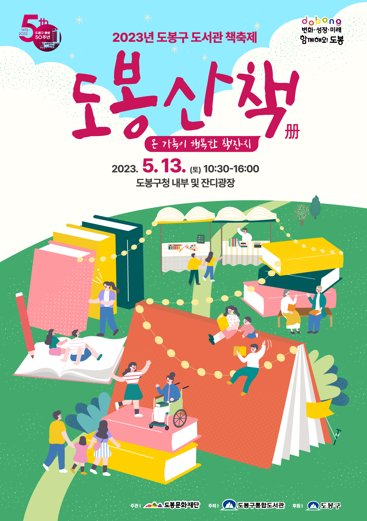 도봉구가 가정의 달을 맞이해 5월 13일(토) 도봉구청에서 2023년 도봉구 도서관 책축제 ‘도봉산책(冊)’을 개최한다. ‘도봉산책(冊)’은 도봉구 도서관 책축제의 명칭으로 ‘도봉구립도서관을 산책하듯 즐긴다’는 의미를 담고 있다.
