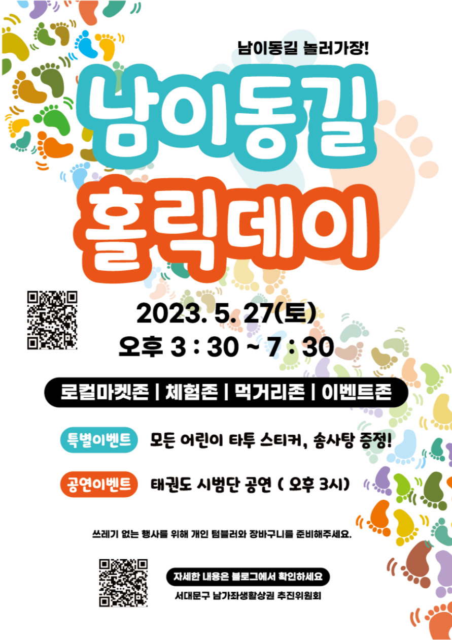 서대문구 남가좌생활상권 추진위원회는 생활상권 골목활성화와 남이동길 브랜드 가치를 확산하기 위해 5월 27일 오후 3시 30분부터 7시 30분까지 ‘제2회 남이동길 홀릭데이 브랜드 축제’를 개최한다고 밝혔다.