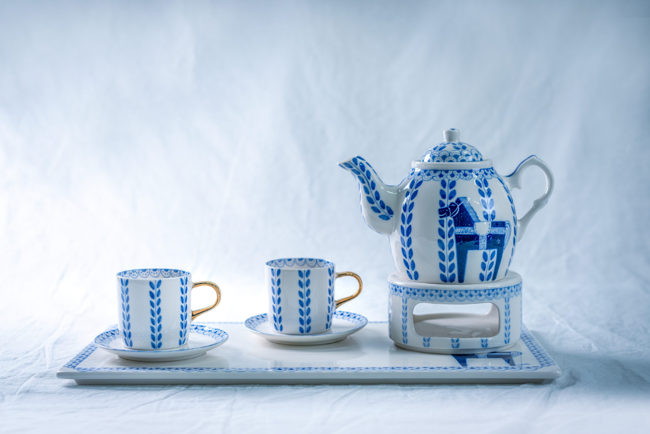 한주은의 도자기에는 북유럽과 한국의 다채로운 요소들이 교차한다. 먼저 그가 사용하는 블루페인팅의 기원은 14세기 초 하얀 바탕에 푸른 염료로 그림을 그린 중국 청화백자(靑畵白磁)로 거슬러 올라간다. 이후 14세기 말 조선, 17세기 일본으로 전해져 선풍적 인기를 끈 가운데 동양을 침략했던 유럽인들 또한 청화백자의 아름다움에 매료됐다. 그중에서도 동인도회사를 소유했던 네덜란드가 청화백자 재현에 강세를 보여 유럽식 청화백자 격의 블루페인팅 도자기인 ‘델프트 블루(Delft Blue)’를 탄생시켰는데, 이는 스웨덴을 포함한 주변 북유럽 국가들에 블루페인팅 도자기가 널리 유행하는 계기가 됐다. 그러나 스웨덴의 블루페인팅 도자기는 1300℃ 고온에서 구워 가볍고 단단하며 채도가 높아 선명한 푸른빛을 띤다. 반면, 한국 청화백자는 묵직하고 채도가 낮아 깊고 은은한 푸른빛을 띠는 차이점이 있다.