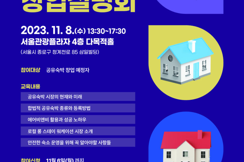 외국인관광도시민박업협회(이하 협회)가 공유숙박 운영자 및 창업예정자를 대상으로 11월 8일(수) 서울에서 ‘공유숙박창업설명회&운영자교육’을 개최한다. 숙박 트렌드가 변화함에 따라 공유숙박의 창업에 대한 관심뿐만…